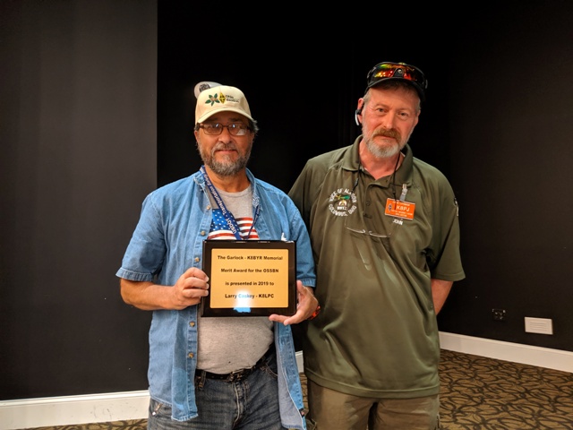 This year we had two award recipients. John Lehman, K8PJ (pictured on the right) joined the net at age 16. He checked into the net and passed his first radiogram on the net from his father's car on the way home from the his license exam session.